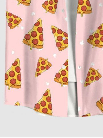 Plus Size Pizza Print Button Pocket Shirt For Men - Light Pink - 4xl