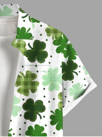 Short Sleeves Shirts > Plus Size Plaid Four Leaf Clover Pin Dot Print St. Patrick's Day Hawaii Button Pocket Shirt For Men