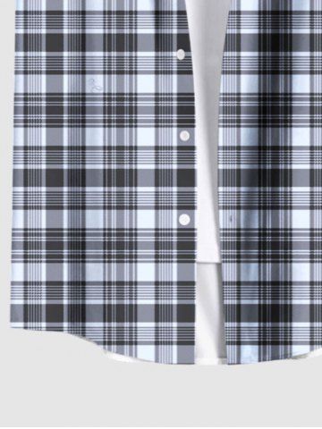 Plus Size Plaid Print Buttons Pocket Shirt For Men - Black - S