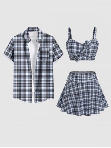 Short Sleeves Shirts > Plus Size Plaid Print Buttons Pocket Shirt For Men