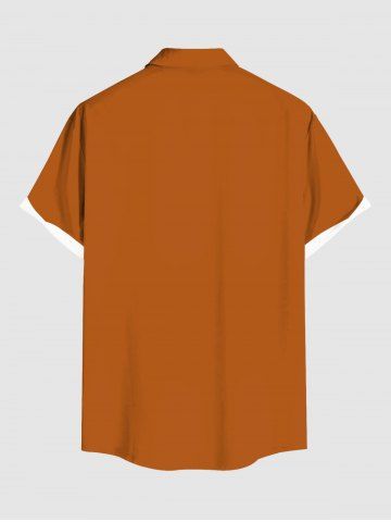 Plus Size Plaid Print Halloween Button Pocket Shirt For Men - Orange - Xl