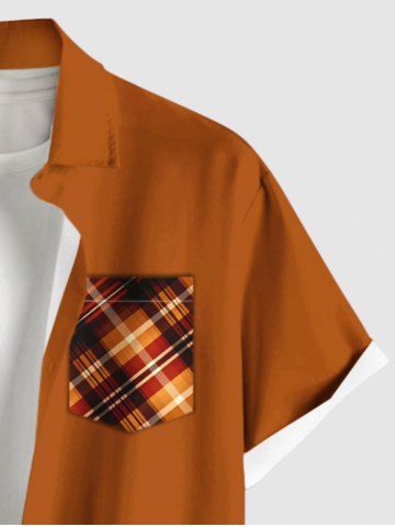 Plus Size Plaid Print Halloween Button Pocket Shirt For Men - Orange - 4xl