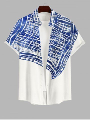 Plus Size Plaid Scarf Pattern Print Buttons Pocket Shirt For Men - White - M