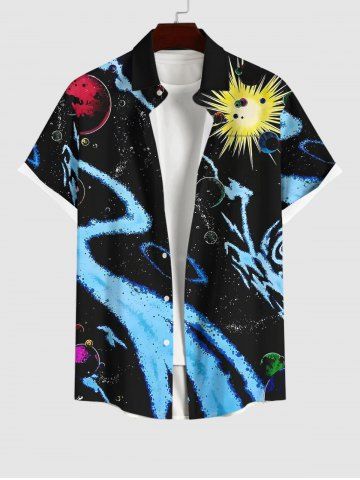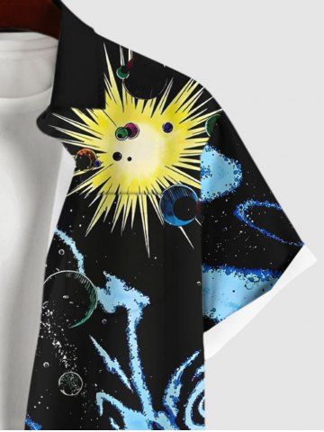 Plus Size Planet Galaxy Universe Print Hawaii Button Pocket Shirt For Men - Black - S
