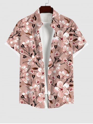 Plus Size Plum Blossoming Flowers Leaf Print Buttons Pocket Hawaii Shirt For Men - Multi-a - L