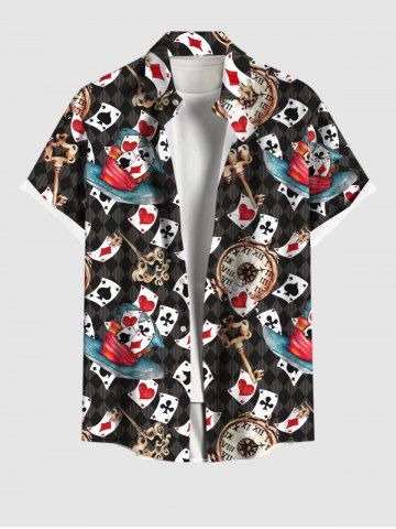 Short Sleeves Shirts > Plus Size Poker Key Clock Print Button Pocket Shirt For Men