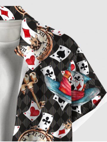 Short Sleeves Shirts > Plus Size Poker Key Clock Print Button Pocket Shirt For Men