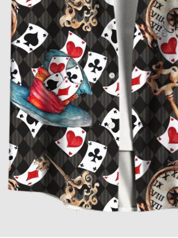 Plus Size Poker Key Clock Print Button Pocket Shirt For Men - Multi-a - 4xl
