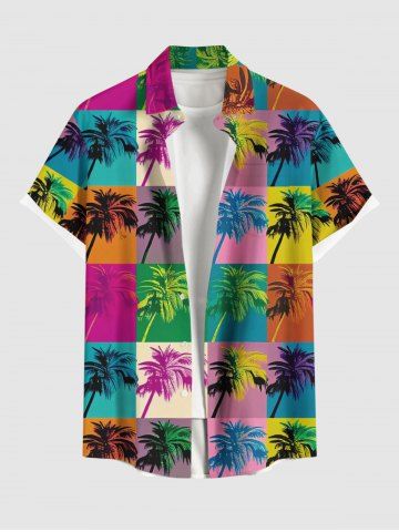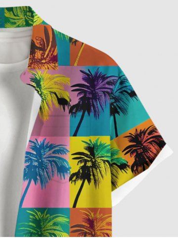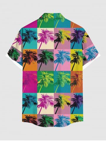 Plus Size Pop Style Coconut Tree Colorful Colorblock Print Hawaii Button Pocket Shirt For Men - Multi-a - S
