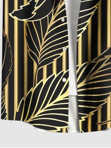 Plus Size Printed Metallic Leaf Stripes Print Buttons Pocket Hawaii Shirt For Men - Black - S