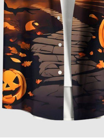 Short Sleeves Shirts > Plus Size Pumpkin Bat Tree Castle Print Halloween Button Pocket Shirt For Men