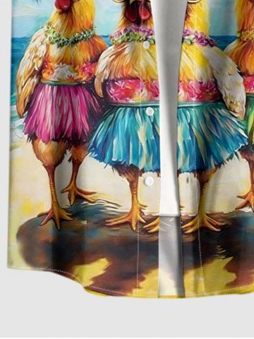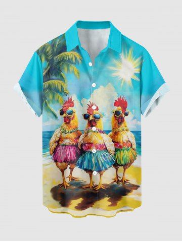 Plus Size Rooster Coconut Tree Sun Print Buttons Pocket Hawaii Shirt For Men - Sky Blue - L