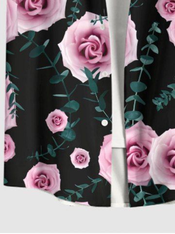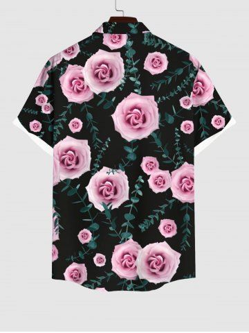 Plus Size Rose Flower Branch Leaf Print Hawaii Button Pocket Shirt For Men - Multi-a - 2xl