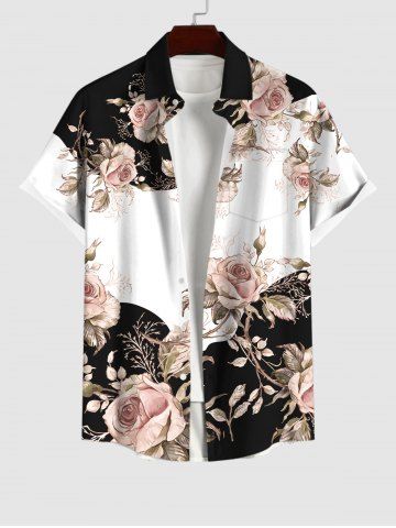 Short Sleeves Shirts > Plus Size Rose Flower Colorblock Print Shirt For Men