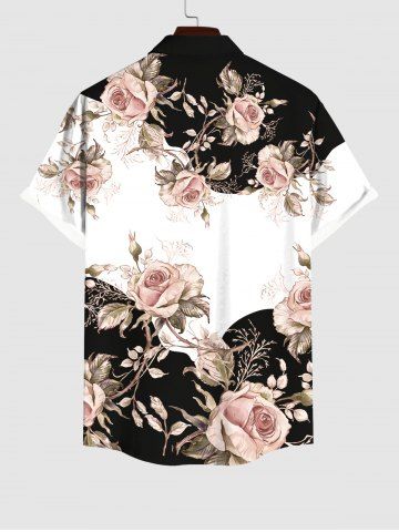 Short Sleeves Shirts > Plus Size Rose Flower Colorblock Print Shirt For Men