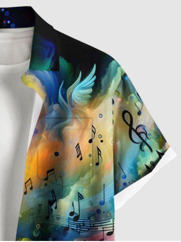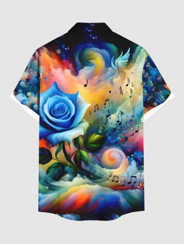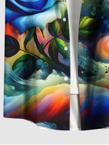 Plus Size Rose Flower Colorful Ombre Cloud Music Symbol Print Hawaii Valentines Button Pocket Shirt For Men - Multi-a - 4xl