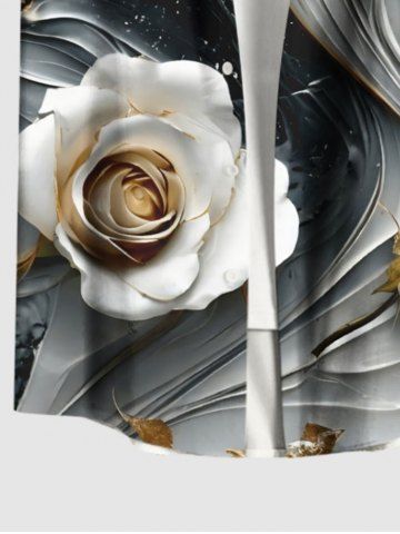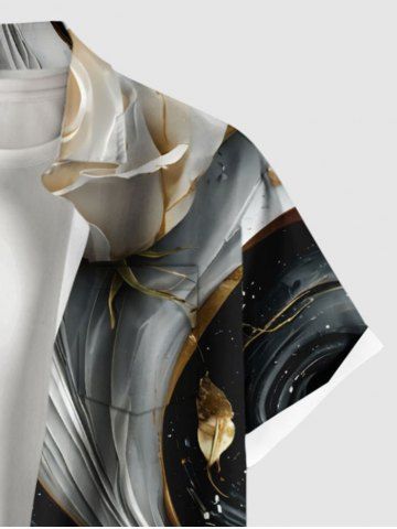 Plus Size Rose Flower Curve Galaxy Print Hawaii Button Pocket Shirt For Men - Black - 4xl