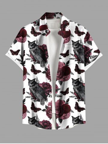 Short Sleeves Shirts > Plus Size Rose Flower Leaf Butterfly Owl Print Halloween Button Pocket Shirt For Men