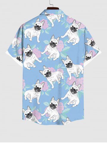 Plus Size Rose Flower Leaf Dog Print Shirt For Men - Light Blue - 3xl