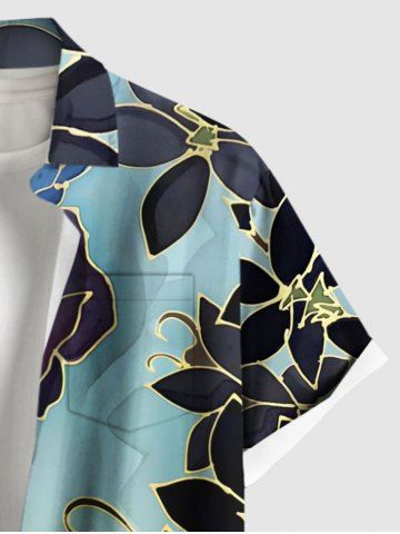 Plus Size Rose Flower Leaf Ombre Print Hawaii Button Pocket Shirt For Men - Green - 3xl