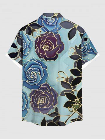 Short Sleeves Shirts > Plus Size Rose Flower Leaf Ombre Print Hawaii Button Pocket Shirt For Men