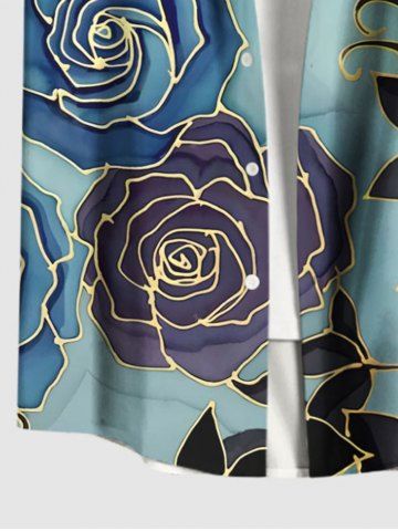 Plus Size Rose Flower Leaf Ombre Print Hawaii Button Pocket Shirt For Men - Green - 5xl