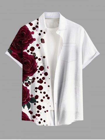 Short Sleeves Shirts > Plus Size Rose Flower Leaf Paint Splatter Print Buttons Pocket Hawaii Shirt For Men