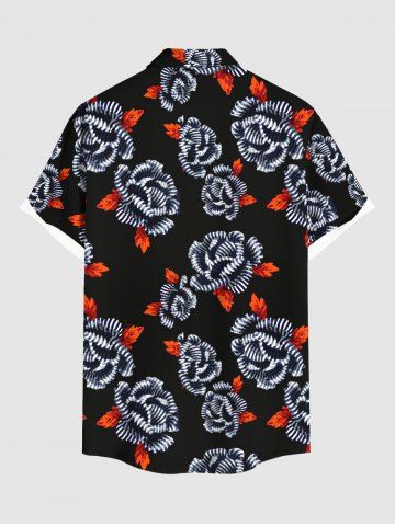 Plus Size Rose Flower Leaf Print Hawaii Button Pocket Shirt For Men - Black - M