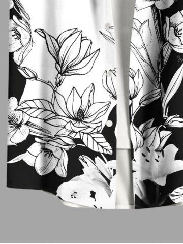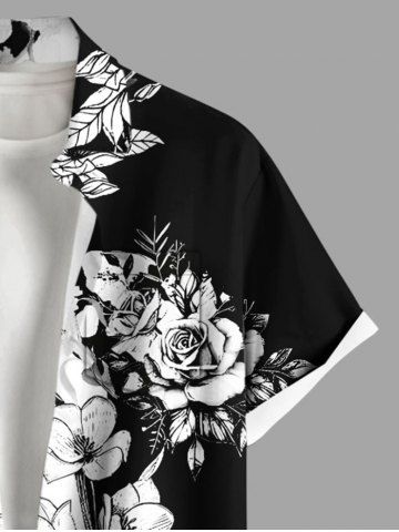 Plus Size Rose Flower Leaf Two Tone Print Hawaii Buttons Pocket Shirt For Men - White - M