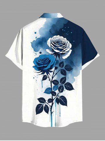 Short Sleeves Shirts > Plus Size Rose Flower Leaf Watercolor Print Buttons Pocket Shirt For Men