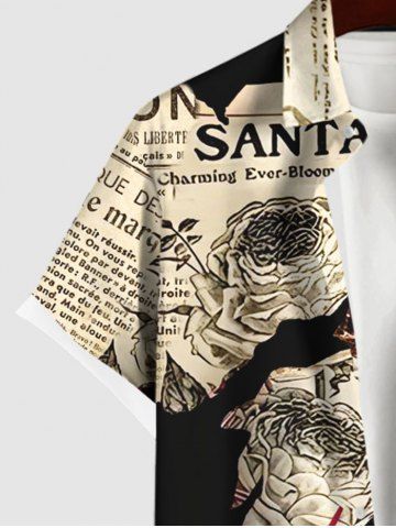 Short Sleeves Shirts > Plus Size Rose Flower Leaves Newspaper Print Buttons Pocket Shirt For Men
