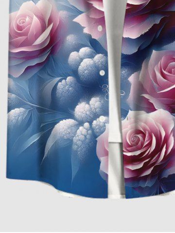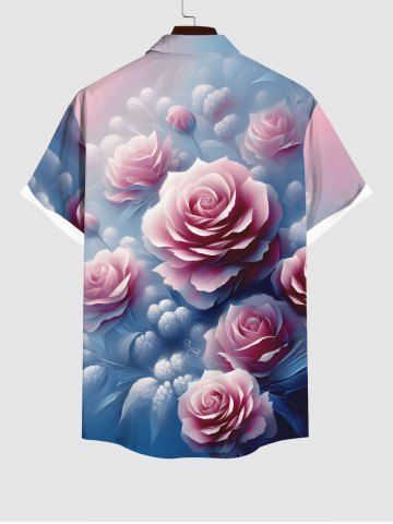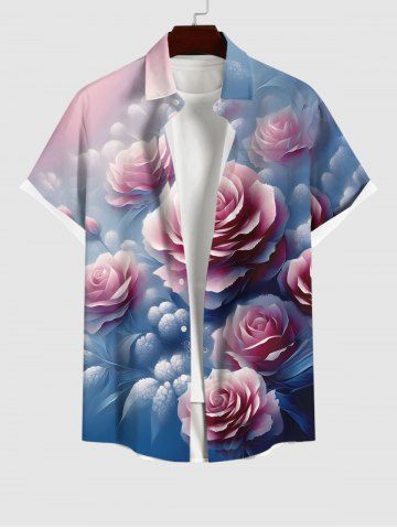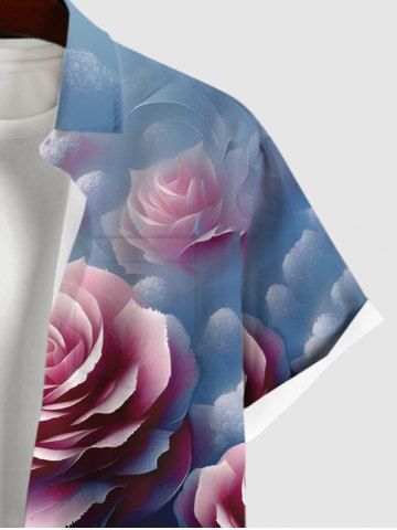 Plus Size Rose Flower Ombre Colorblock Print Buttons Pocket Hawaii Shirt For Men - Multi-a - L