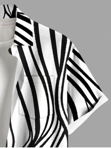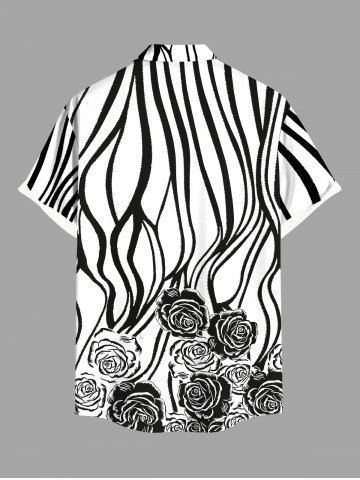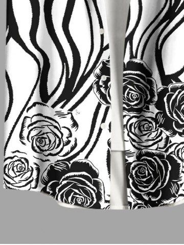 Plus Size Rose Flower Zebra Striped Print Hawaii Button Pocket Shirt For Men - White - M