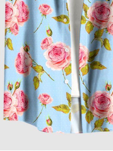 Plus Size Rose Flowers Leaf Print Buttons Pocket Hawaii Shirt For Men - Light Blue - M