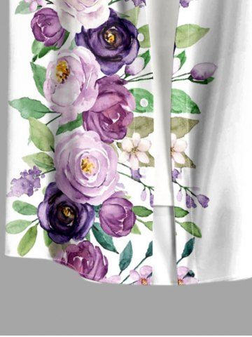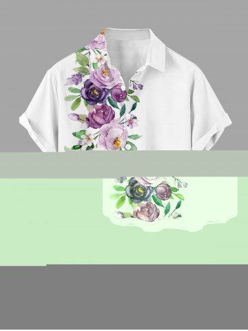Plus Size Rose Flowers Leaf Print Buttons Pocket Hawaii Shirt For Men - White - S