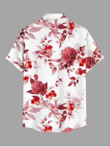 Plus Size Rose Flowers Leaf Print Buttons Pocket Hawaii Shirt For Men - Red - 2xl