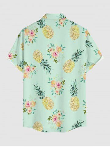 Plus Size Rose Flowers Pineapple Print Buttons Pocket Hawaii Shirt For Men - Light Green - 5xl