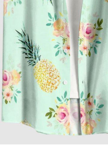 Plus Size Rose Flowers Pineapple Print Buttons Pocket Hawaii Shirt For Men - Light Green - 6xl