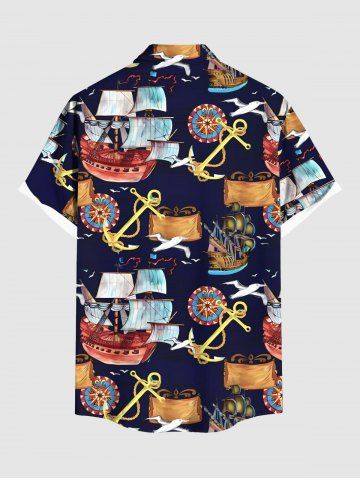Short Sleeves Shirts > Plus Size Sailboat Anchor Print Hawaii Cruise Button Pocket Shirt For Men