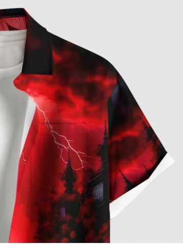 Plus Size Sailboat Sea Lightning Ombre Galaxy Print Hawaii Cruise Button Pocket Shirt For Men - Red - M