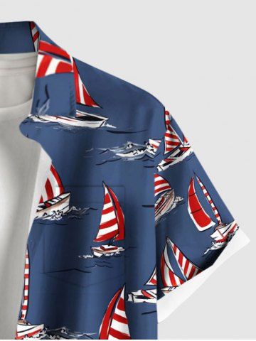 Short Sleeves Shirts > Plus Size Sailboat Sea Wave Print Hawaii Cruise Button Pocket Shirt For Men