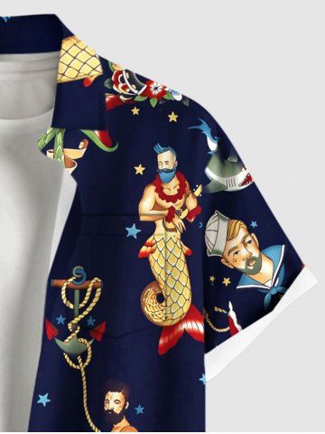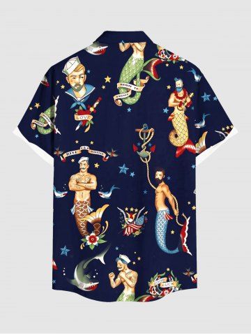 Short Sleeves Shirts > Plus Size Sailor Mermaid Patriotic American Flag Anchor Shark Print Hawaii Cruise Shirt For Men