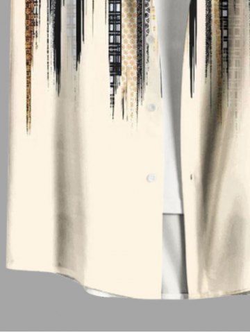 Plus Size Scarf Pattern Design Geometric Stripes Print Buttons Pocket Shirt For Men - Light Coffee - 6xl
