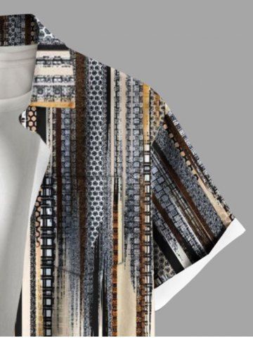 Short Sleeves Shirts > Plus Size Scarf Pattern Design Geometric Stripes Print Buttons Pocket Shirt For Men