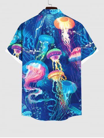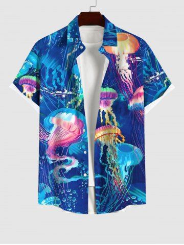 Short Sleeves Shirts > Plus Size Sea Creatures Jellyfish Print Buttons Pocket Shirt For Men