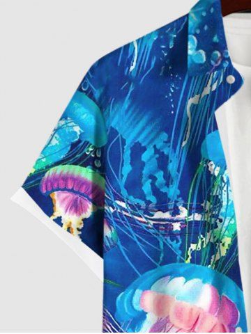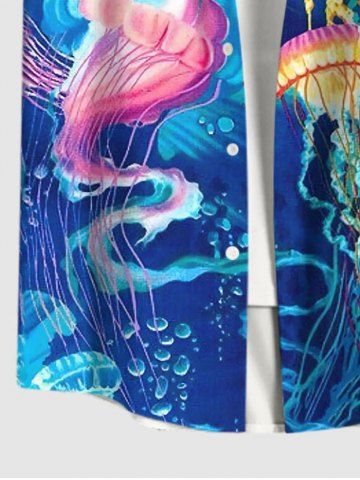 Plus Size Sea Creatures Jellyfish Print Buttons Pocket Shirt For Men - Deep Blue - Xl