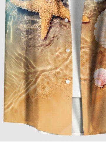 Short Sleeves Shirts > Plus Size Sea Ripples Beach Starfish Print Buttons Pocket Hawaii Shirt For Men