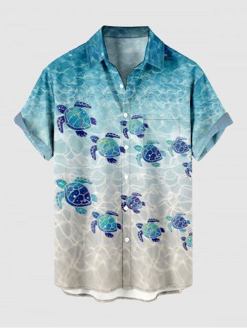 Short Sleeves Shirts > Plus Size Sea Turtle Sea Ripple Print Buttons Pocket Hawaii Shirt For Men