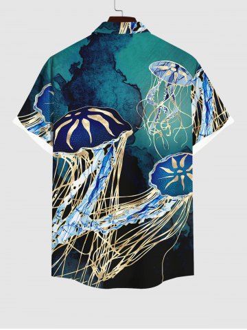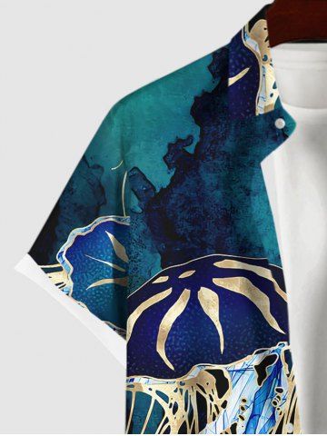 Short Sleeves Shirts > Hawaii Plus Size Sea Creatures Underwater World Jellyfish Print Buttons Pocket Shirt For Men