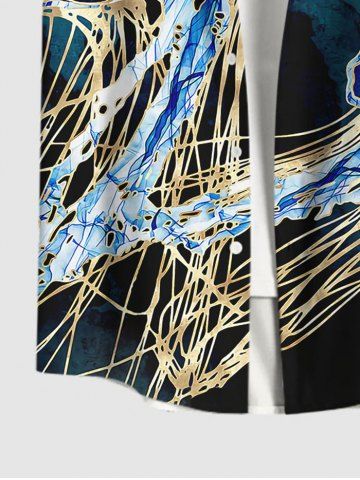 Hawaii Plus Size Sea Creatures Underwater World Jellyfish Print Buttons Pocket Shirt For Men - Multi-a - 4xl